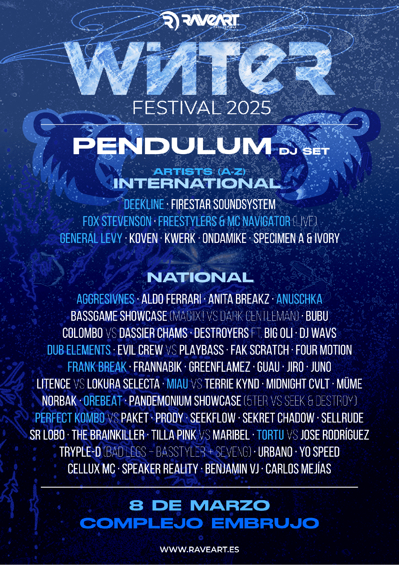 El elemento central es el isotipo del oso polar, que añade un toque de fuerza y resistencia, en sintonía con la energía nocturna y el ambiente de las fiestas de breakbeat.