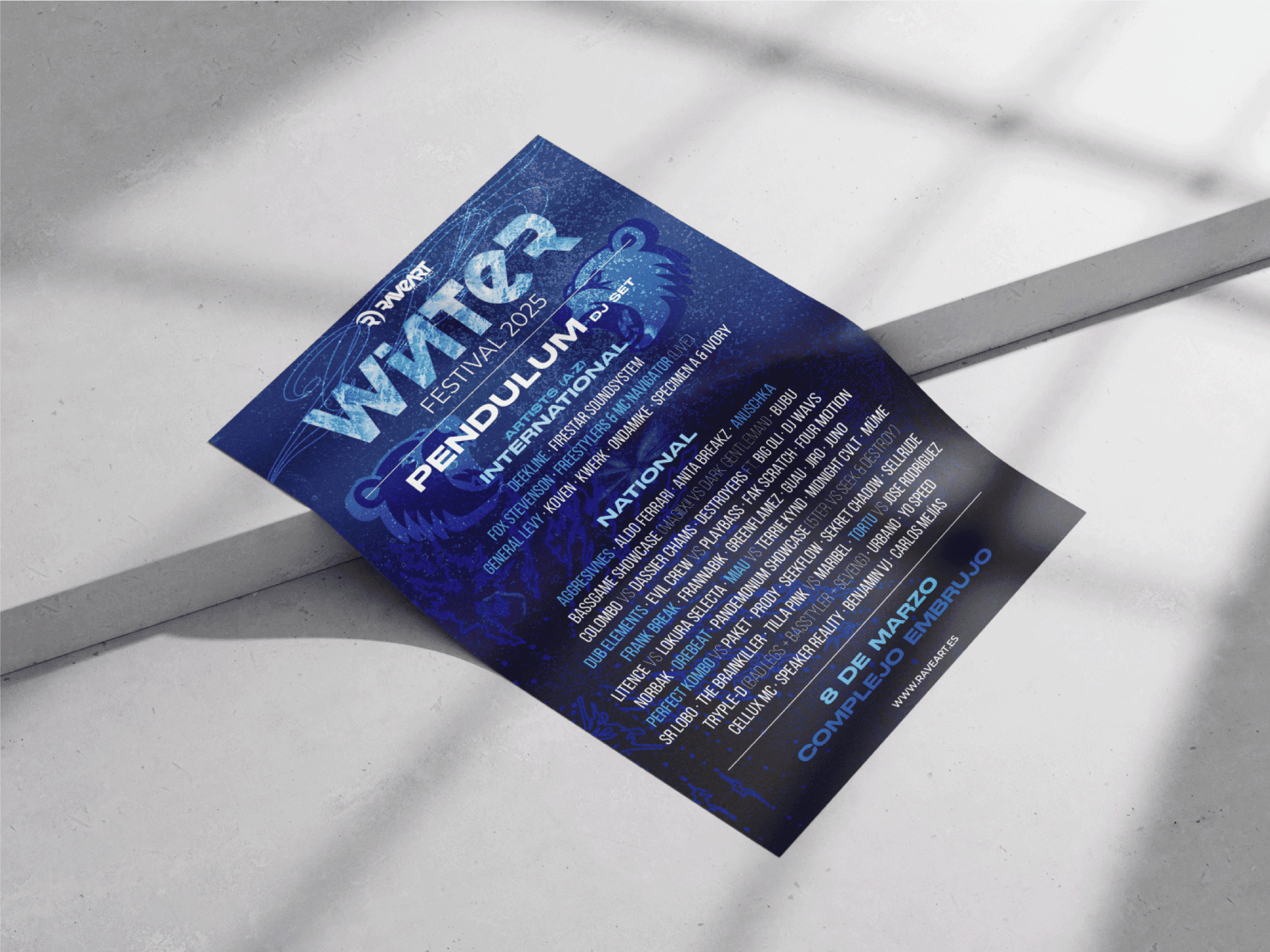 Este proyecto es una propuesta de identidad visual y merchandising para Winter Festival, un evento de música electrónica que se celebra anualmente en Granada, centrado en el breakbeat.
